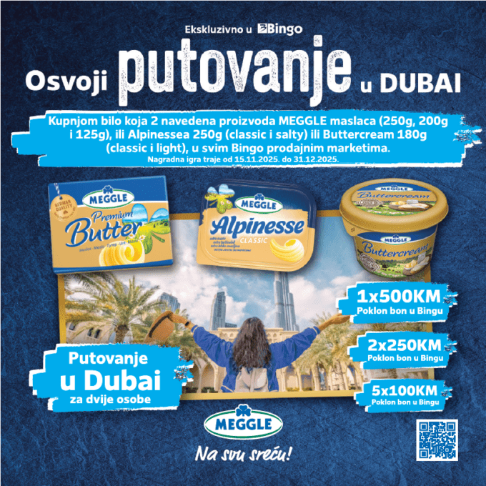 Dobitnici nagradne igre – 25.07.2025. – 25.08.2025: ROŠTILJ NA UGALJ: ROŠTILJSKI SET: Čestitamo svim dobitnicima, a iste ćemo kontaktirati putem maila. MEGGLE BiH